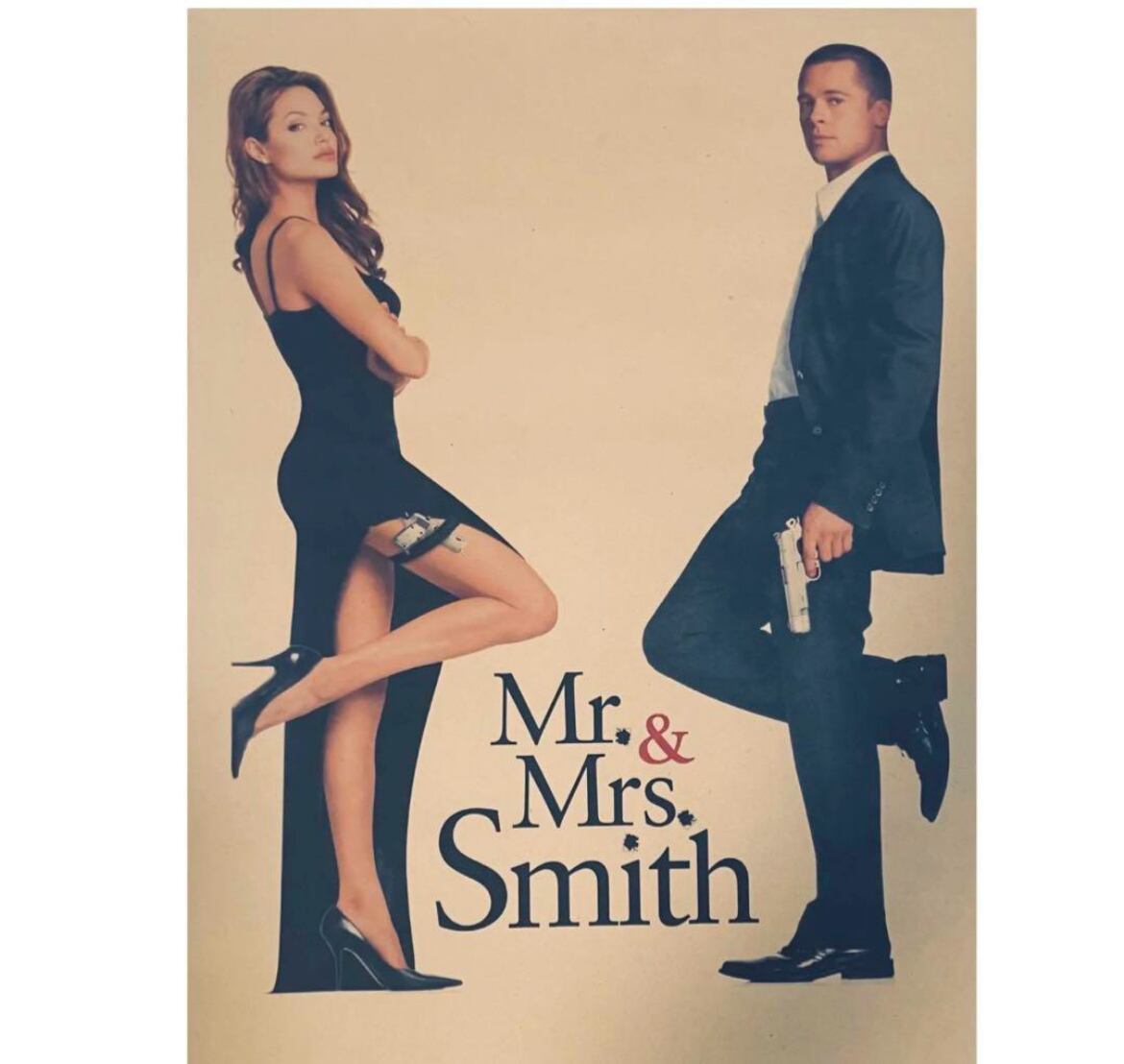 ブラッド・ピット出演、『Mr.&Mrs. スミス/ミスターアンドミセススミス』のレトロなクラフト素材のレプリカポスターです。