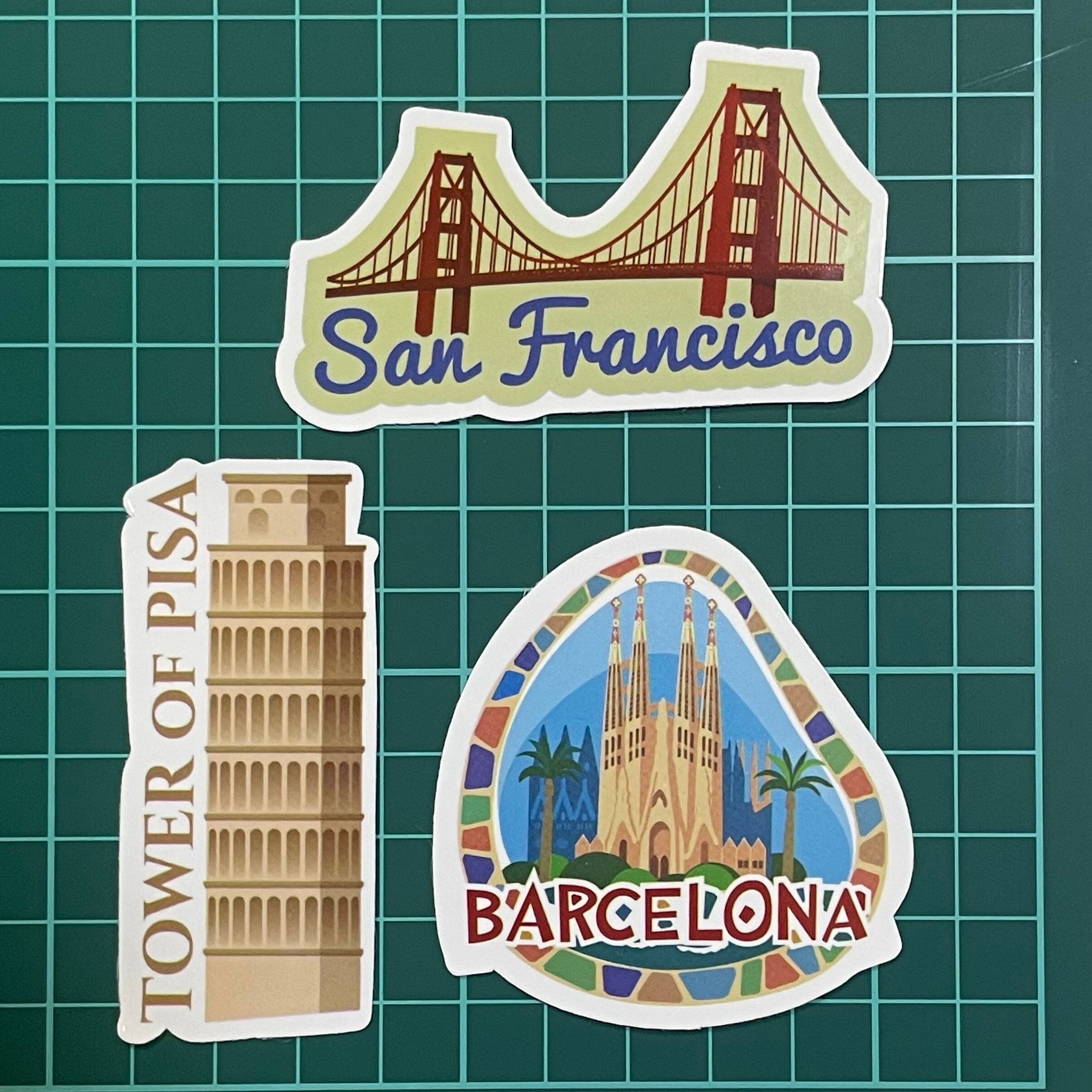 世界の都市をデザインした防水ステッカーの3枚セットです。