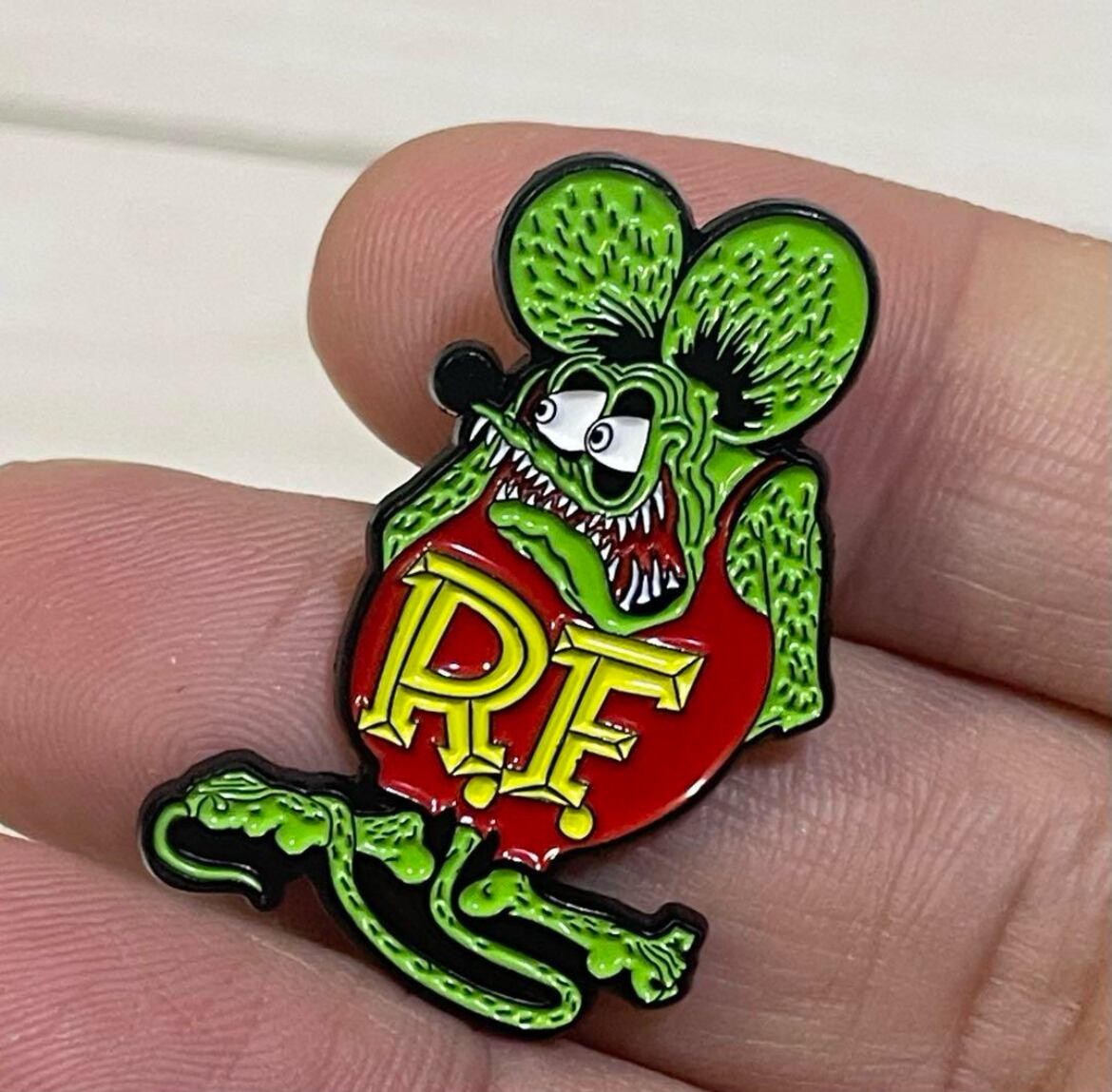 アメリカのヴィンテージ感のあるラットフィックをデザインしたお洒落でユニークなピンバッジです。