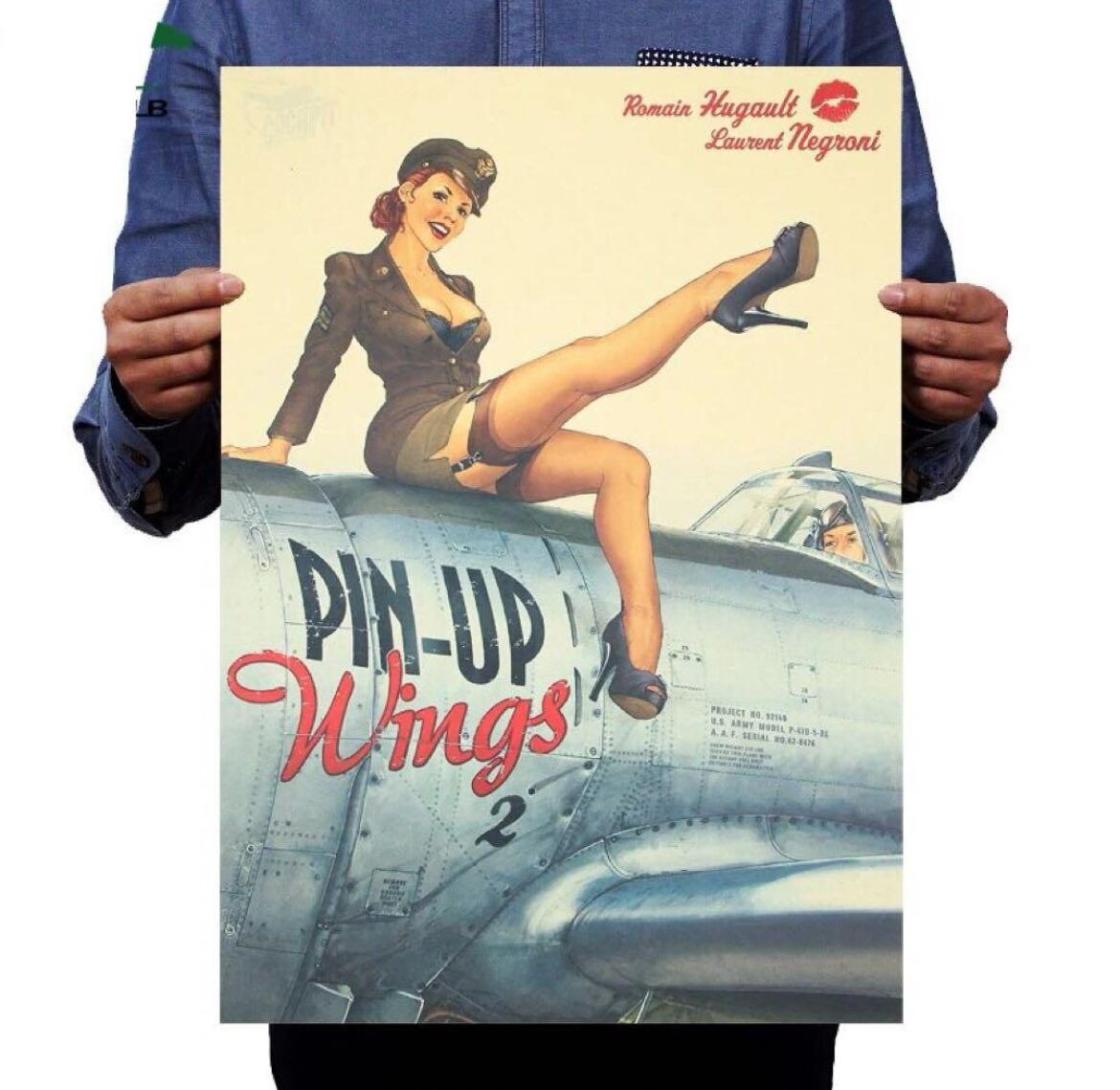 米軍の戦闘機に乗ったセクシーな女性のレトロなアメリカンアートポスターです。
