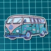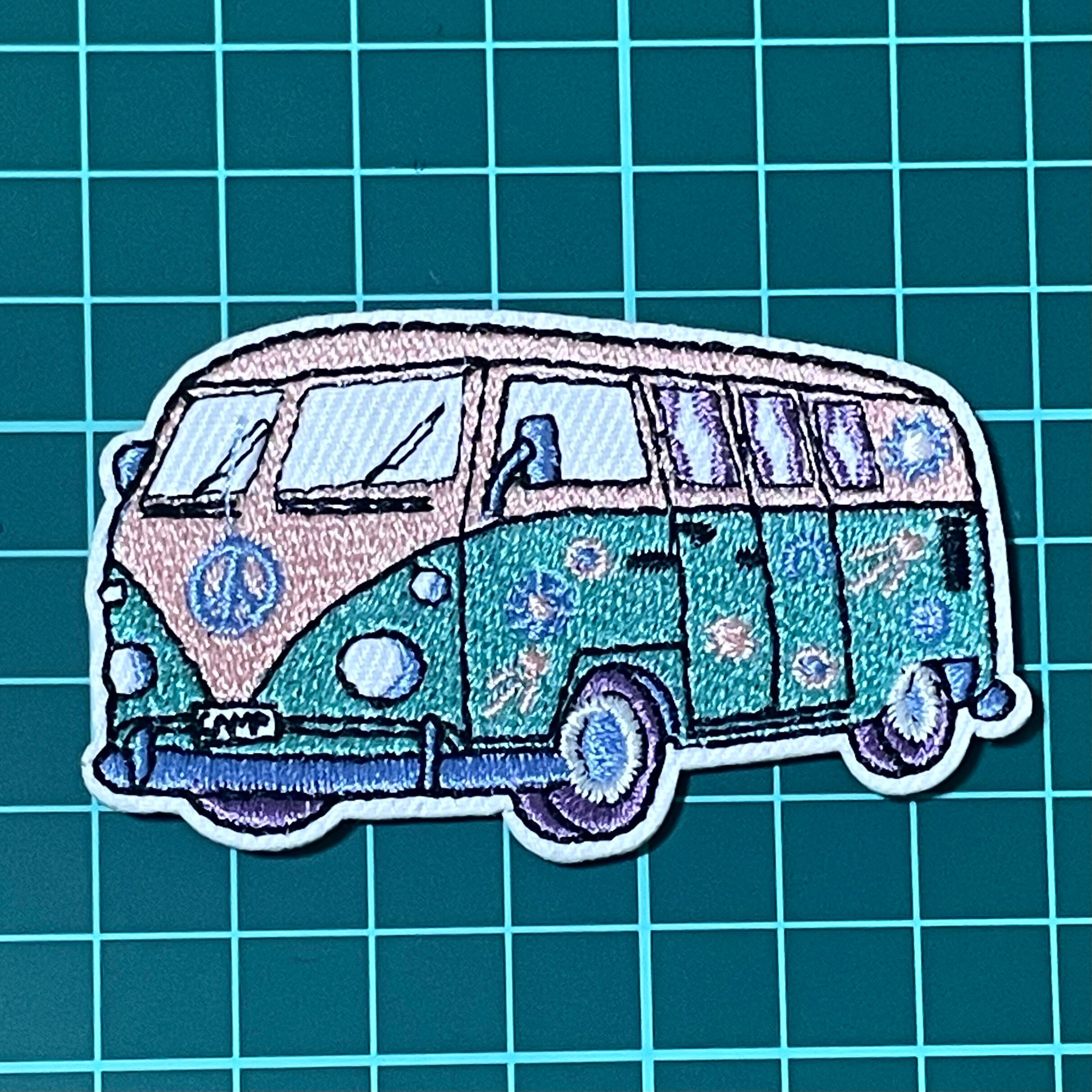 可愛いワーゲンバスをデザインしたお洒落な粘着シート付きワッペンです。