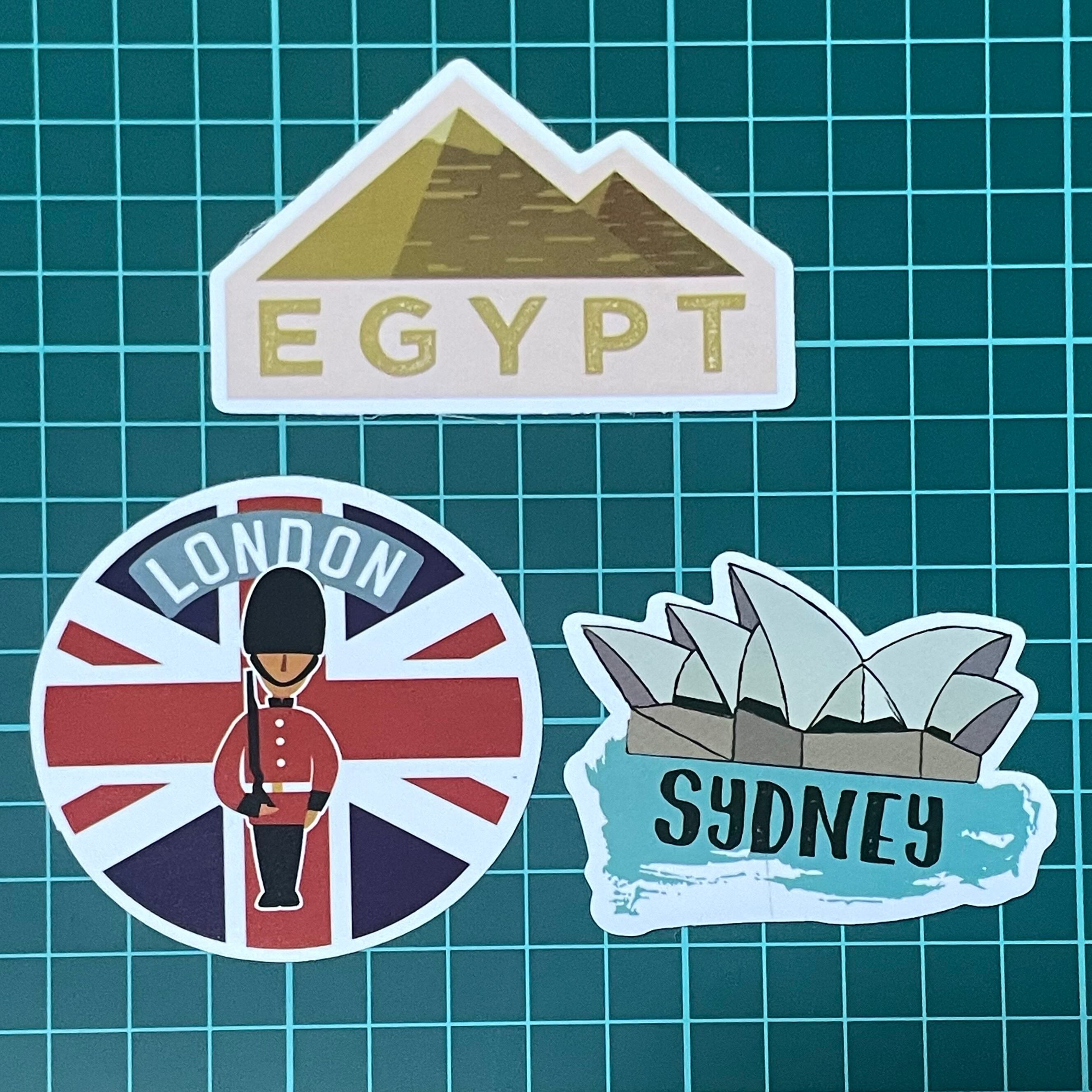 ST13 防水ステッカー 3枚 シール 世界 国旗 ロンドン シドニー エジプト