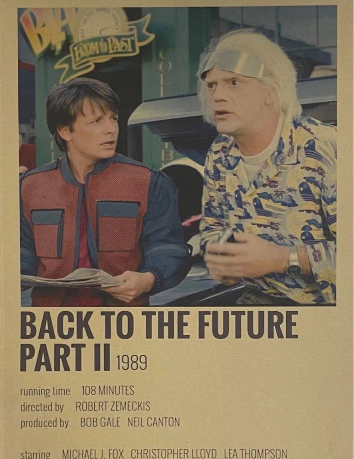 マイケル・J・フォックス主演の映画『バック・トゥ・ザ・フューチャー2』のレトロチックなインテリアポスターです。