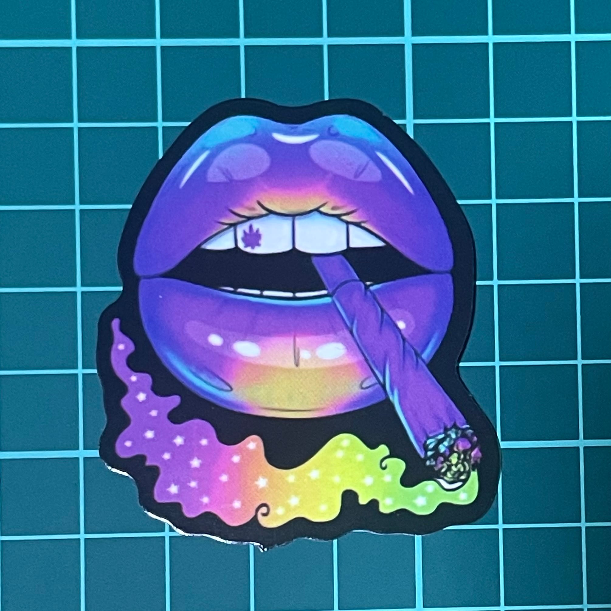 煙草を吹かした唇をデザインした光沢のあるカッコいいステッカーです。