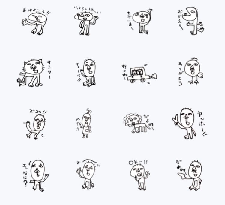 甥っ子の太郎が描きました。ヘタで雑なスタンプですが、子供にしては上手?個性的で面白くゆるいキャラ。適当に返事する時に。あまり使えない?毎日使える?基本挨拶40個。
