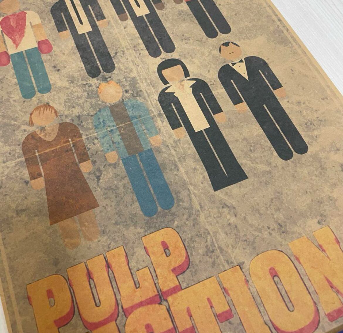 クエンティン・タランティーノ監督の映画『パルプフィクション』をアートでユニークな雰囲気に描いたお洒落なクラフトポスターです。