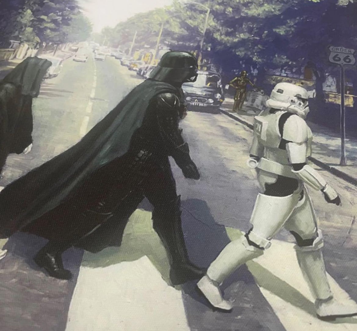 ダースベイダー、ストーム・トルーパー、パルパティーン皇帝、ボバ・フェットの4人がビートルズになりきっています。