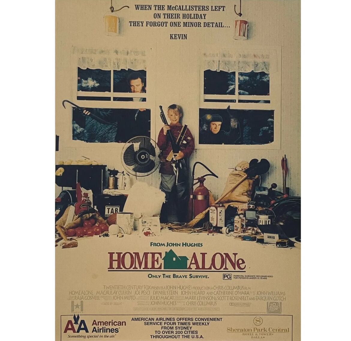 マコーレー・カルキン主演の映画『ホームアローン』のレトロでアンティークな洋画のクラフトポスターです。
