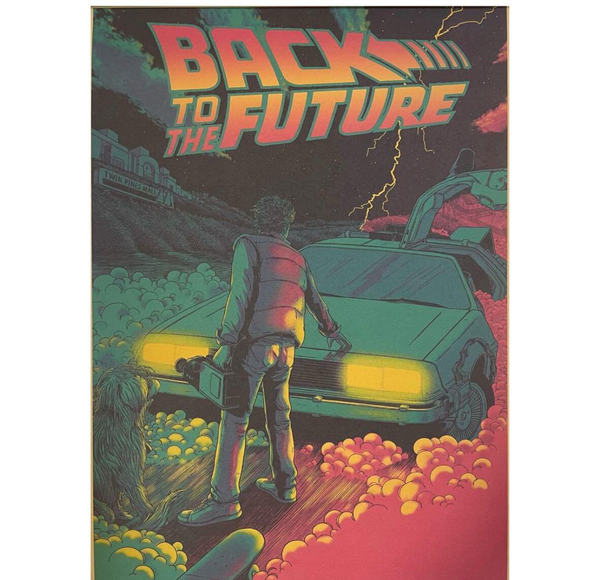 マイケル・J・フォックス主演、映画『バック・トゥ・ザ・フューチャー』のレトロでお洒落なクラフトポスターです。
