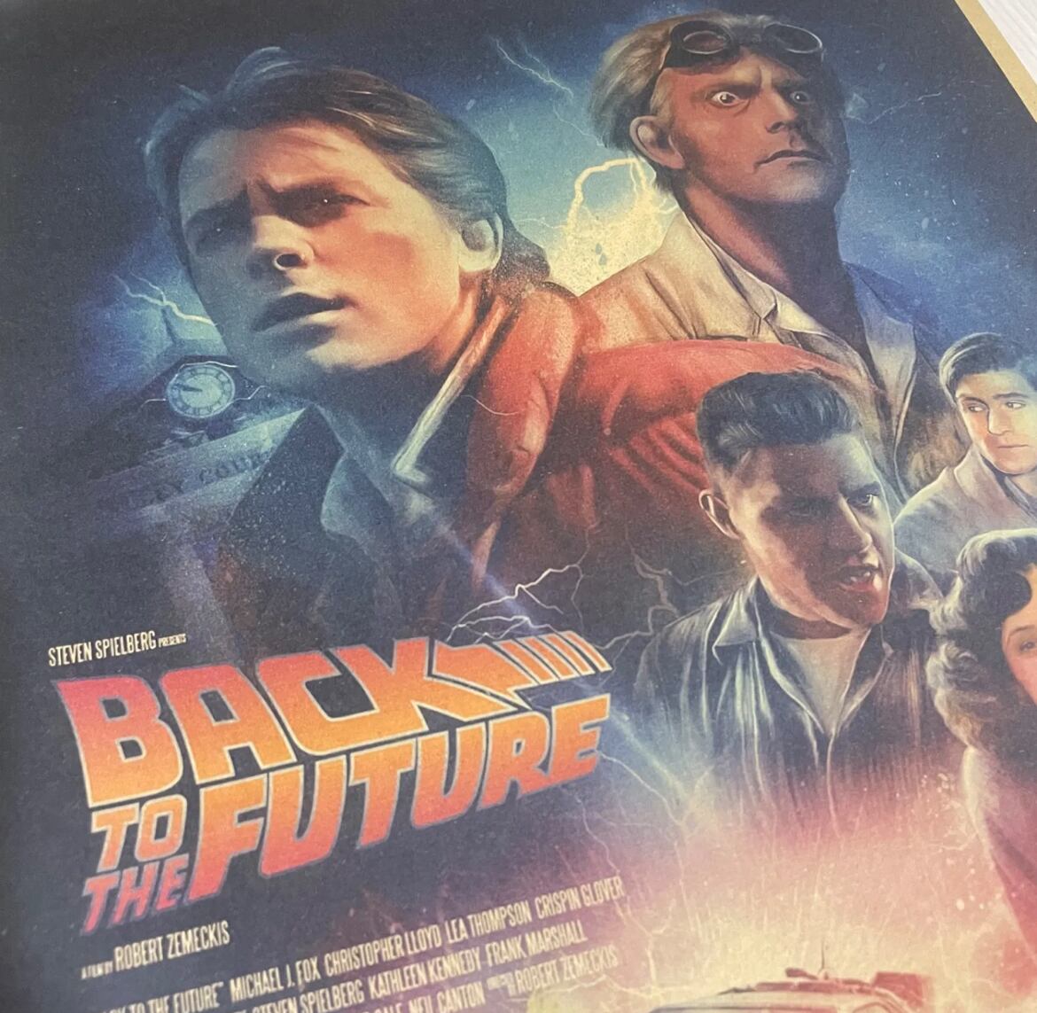 マイケル・J・フォックス主演、映画『バック・トゥ・ザ・フューチャー』のレトロでお洒落なクラフトポスターです。