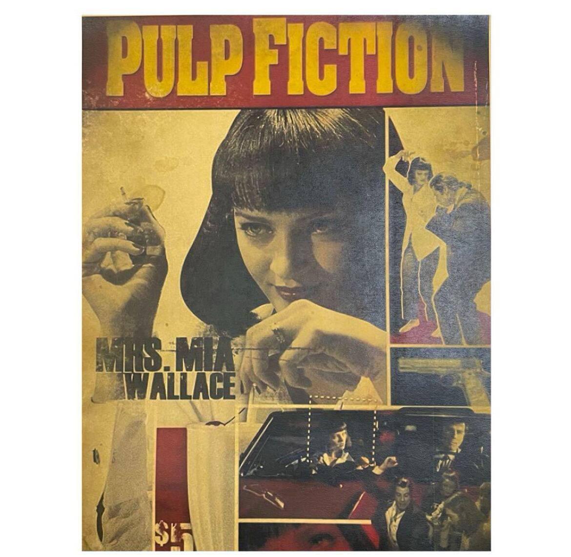 クエンティン・タランティーノ監督の映画『パルプフィクション』のレトロでアンティークな雰囲気のお洒落なクラフトポスターです。