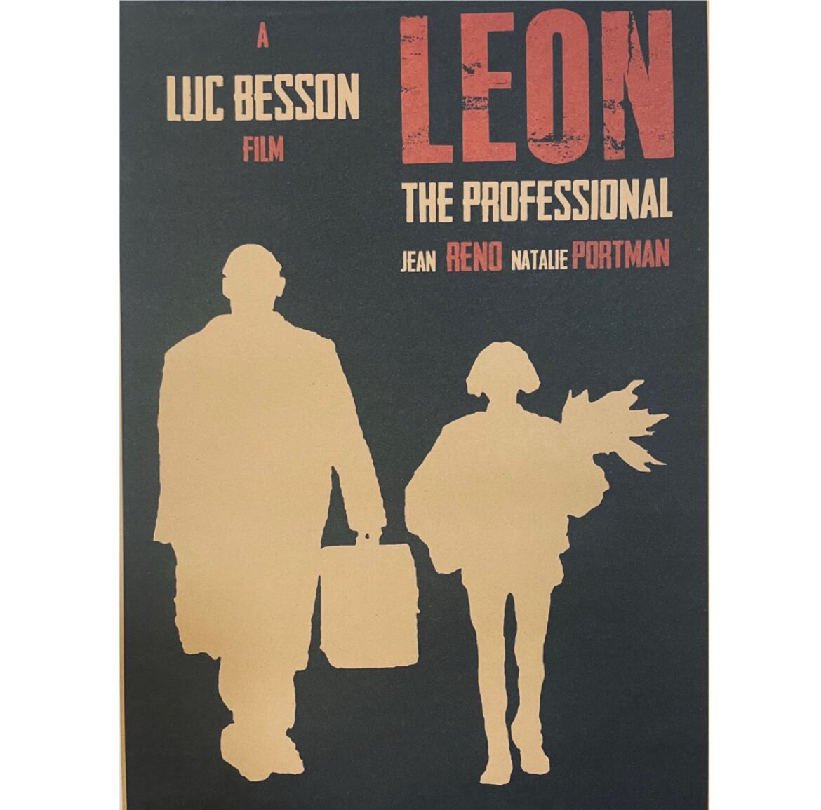 リュック・ベッソン監督、ジャン・レノ主演の映画『レオン』のレトロでアンティークなクラフトポスターです。