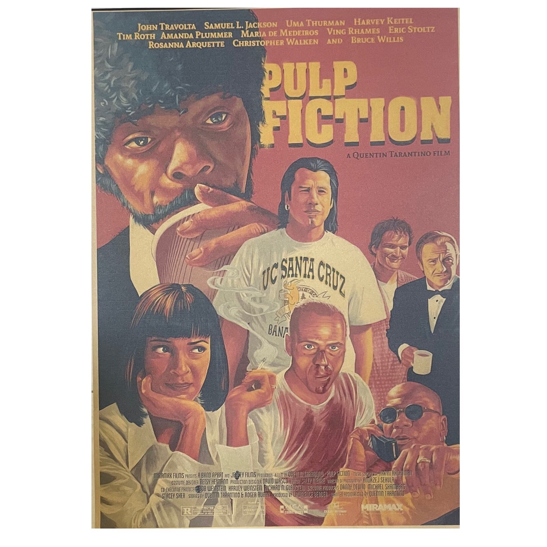 ◾️クエンティン・タランティーノ監督の映画『パルプフィクション』のレトロでアンティークな雰囲気のお洒落なクラフトポスターです。