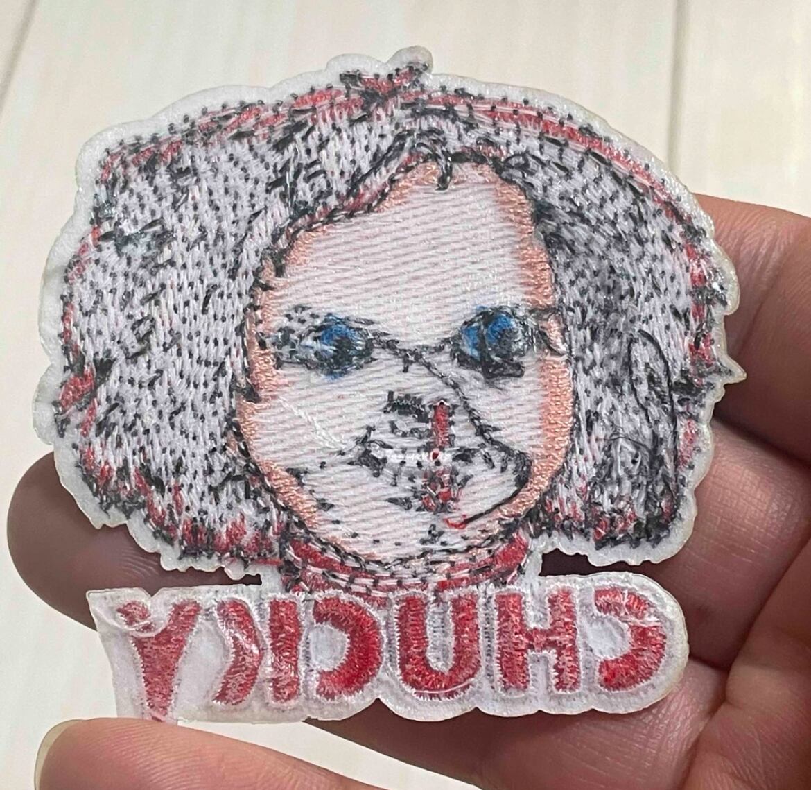 ホラー映画『チャイルドプレイ』のチャッキーをデザイしたハロウィンにもオススメの刺繍ワッペンです。