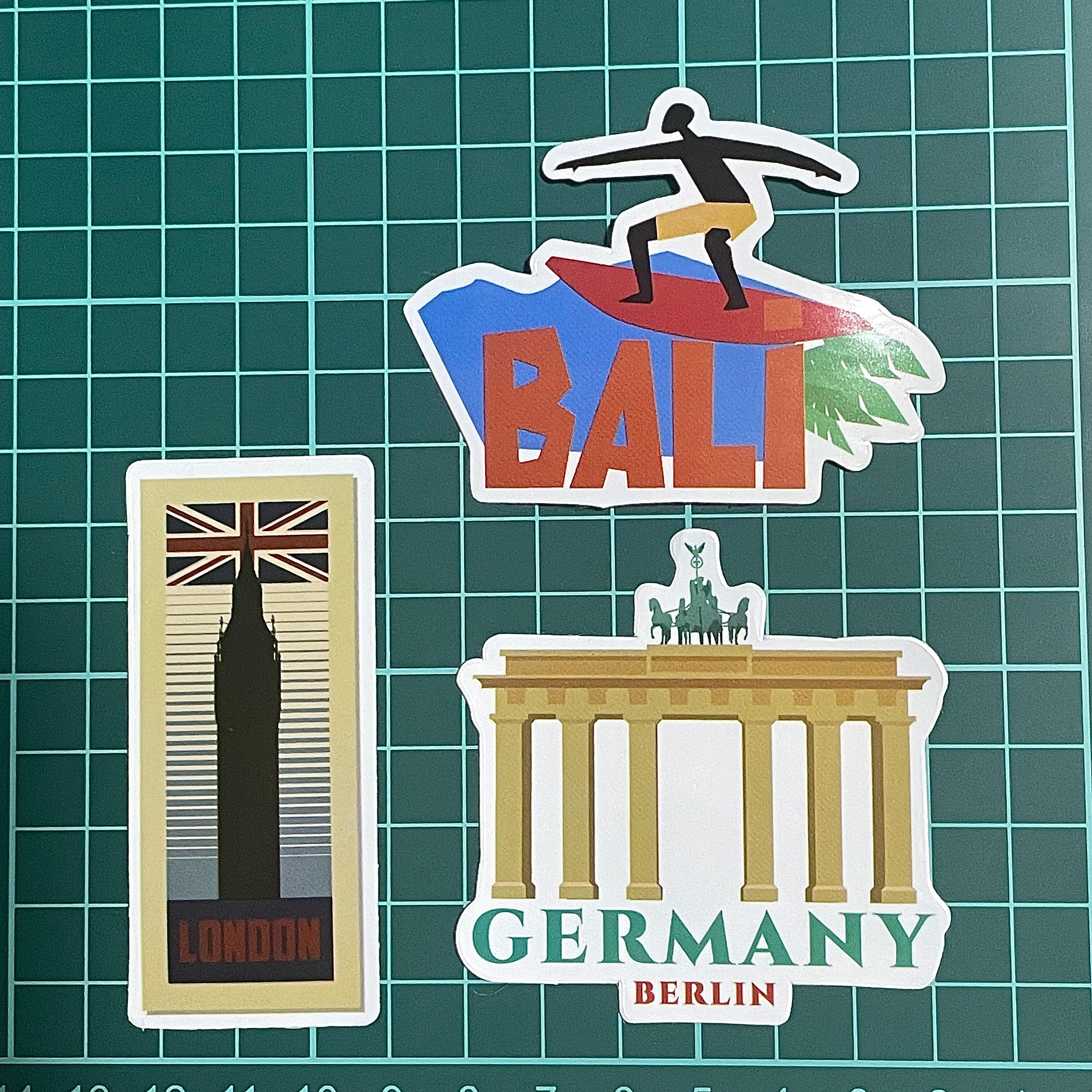 世界の都市をデザインした防水ステッカーの3枚セットです。