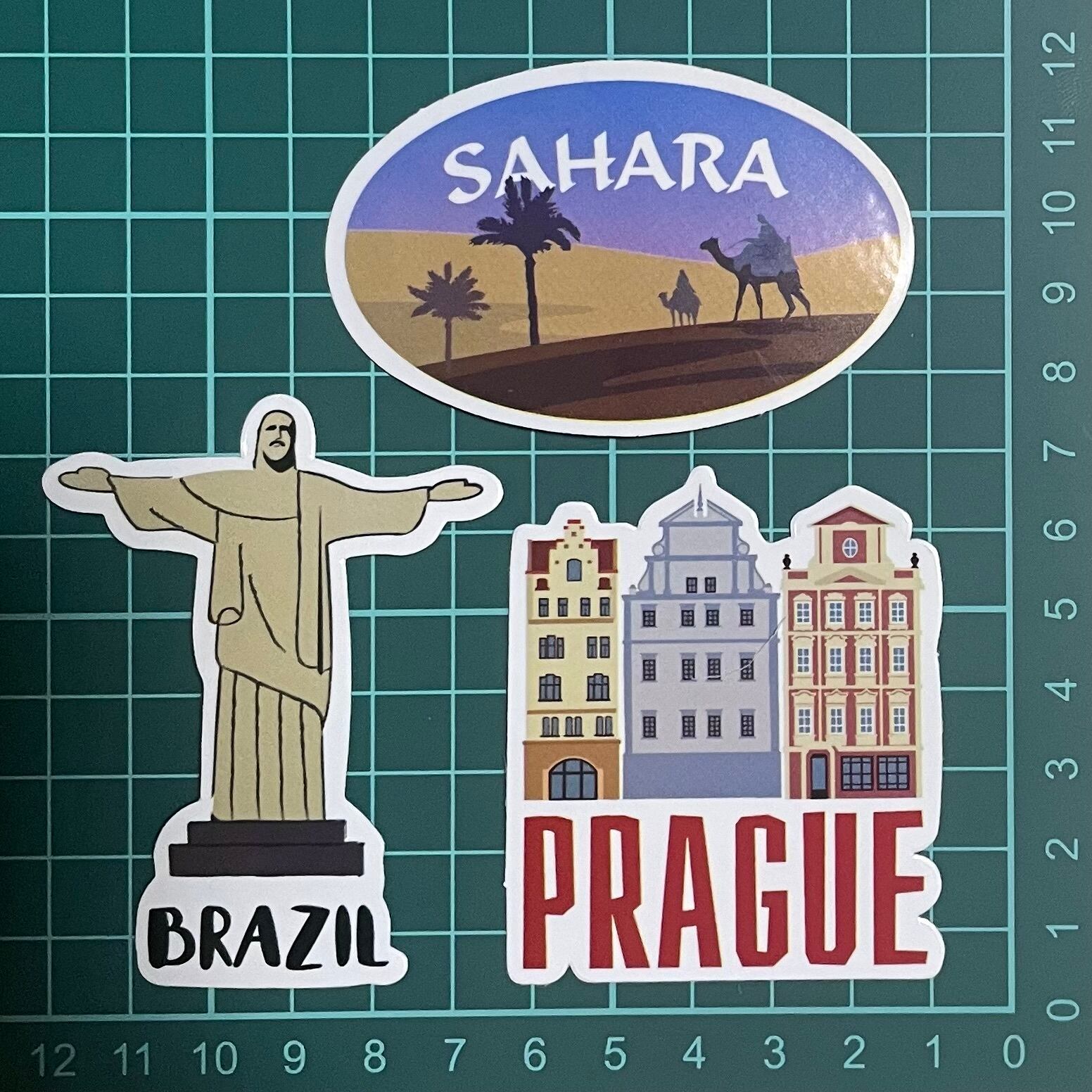 世界の都市をデザインした防水ステッカーの3枚セットです。