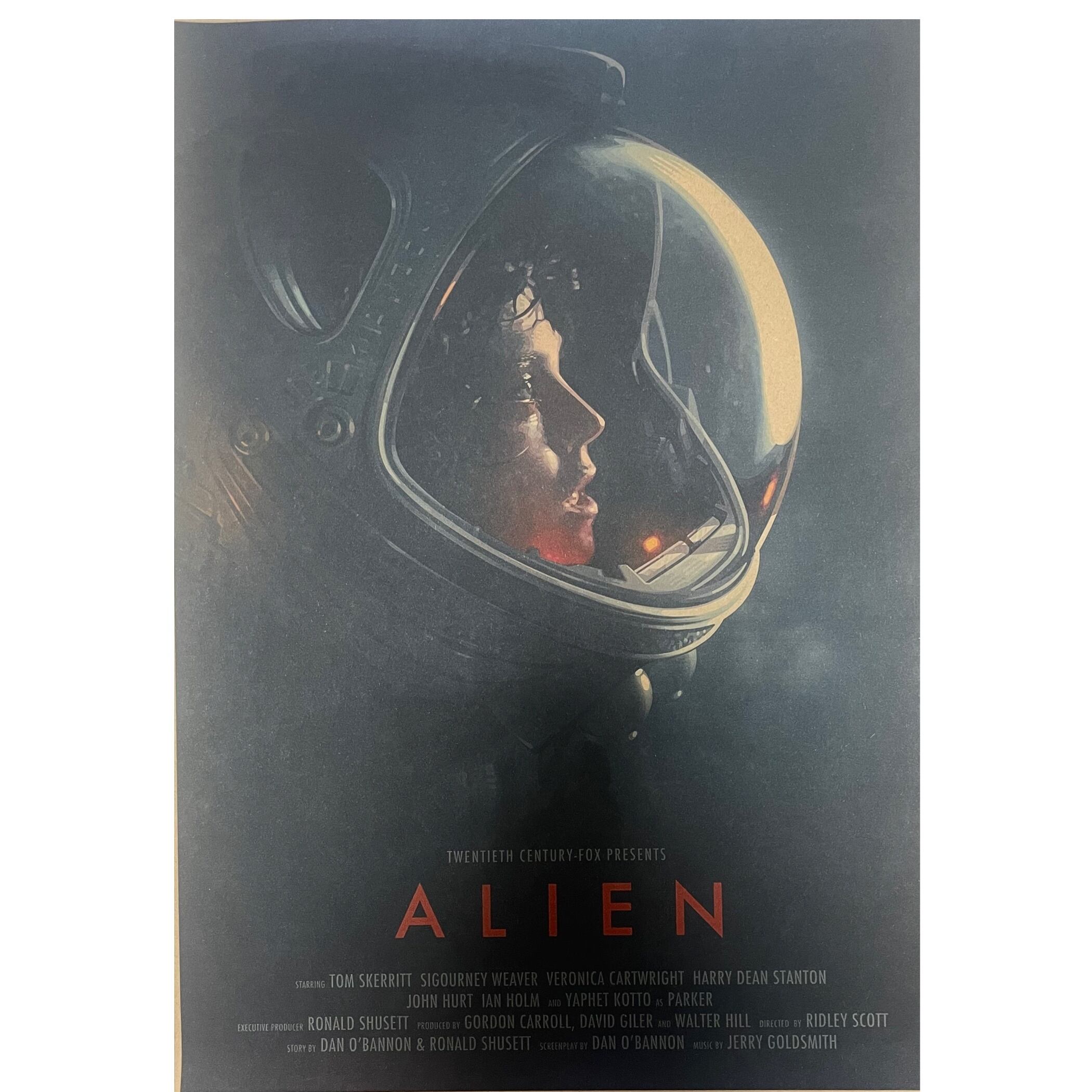シガニー・ウィーバー主演、SF映画『エイリアン』のレトロな映画ポスターです。
