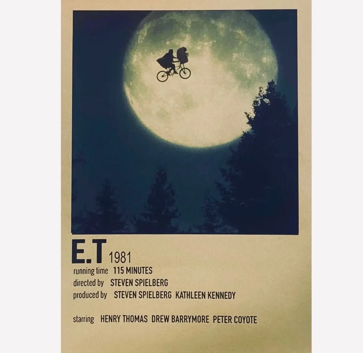 スティーブン・スピルバーグ監督の名作映画『E・T』のアンティークなクラフトポスターです。