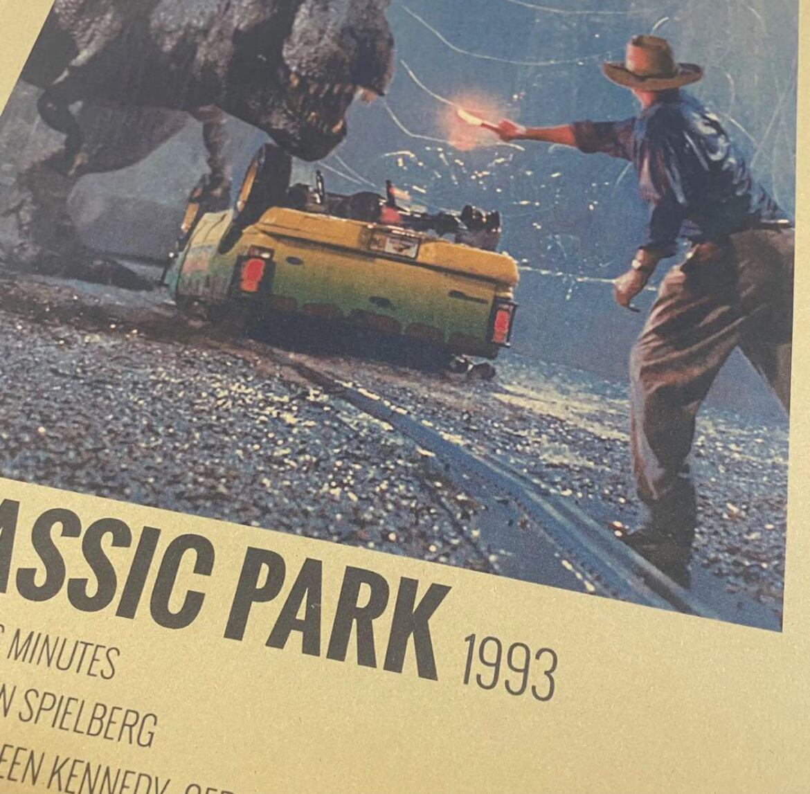 スティーブン•スピルバーグ監督の映画『ジュラシックパーク』のアンティークなクラフトポスターです。